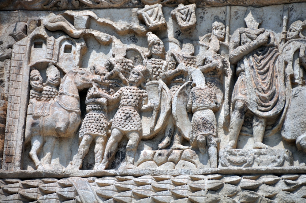 Detail reliéfu na rímskom oblúku cisára Galéria. Foto: BUBO.