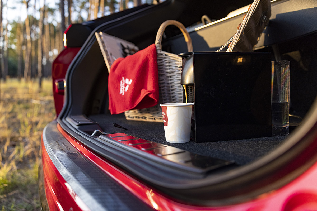 Môžete si napríklad, tak ako my, urobiť kávu alebo jednoducho prakticky povysávať auto veľkým vysávačom. Spaľovací motor pritom môže slúžiť ako zdroj energie, ak náhodou prečerpáte 13,8kWh batériu. Stačí ho zapnúť na voľnobeh a ste späť v hre.